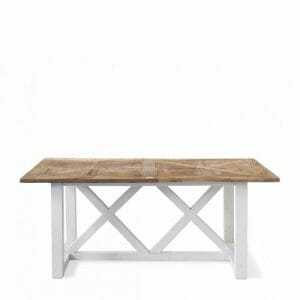 La mesa de comedor Falcon Crest es una hermosa mesa de comedor redonda con un diámetro de 1,5 metros. El tablero de la mesa está hecho de roble recuperado con incrustaciones. Tanto la estructura como el color de esta vieja madera de roble muestran mucha variación. Como resultado, ¡cada tablero es único! La estructura de esta mesa de comedor de madera está hecha de hierro y acabada en negro mate. Esta mesa de comedor estable también viene en una variedad rectangular.